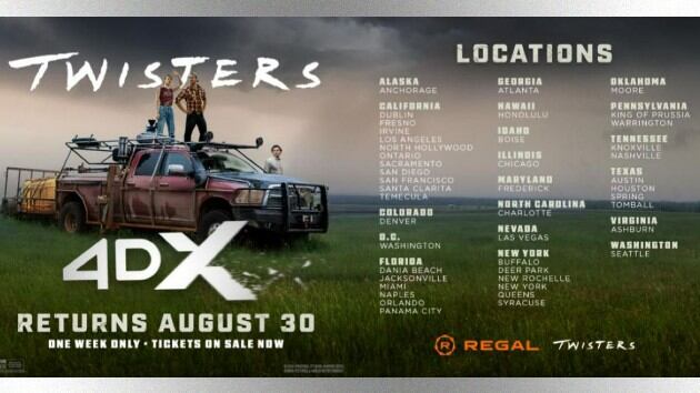 "During opening week of Twisters, most 4DX showtimes for the movie quickly sold out at Regal locations offering that premium format," Lamar said. "Despite the packed summer movie calendar, we found an opportunity to schedule seven more days of Twisters in 4DX and introduce a new way to enjoy the original film."