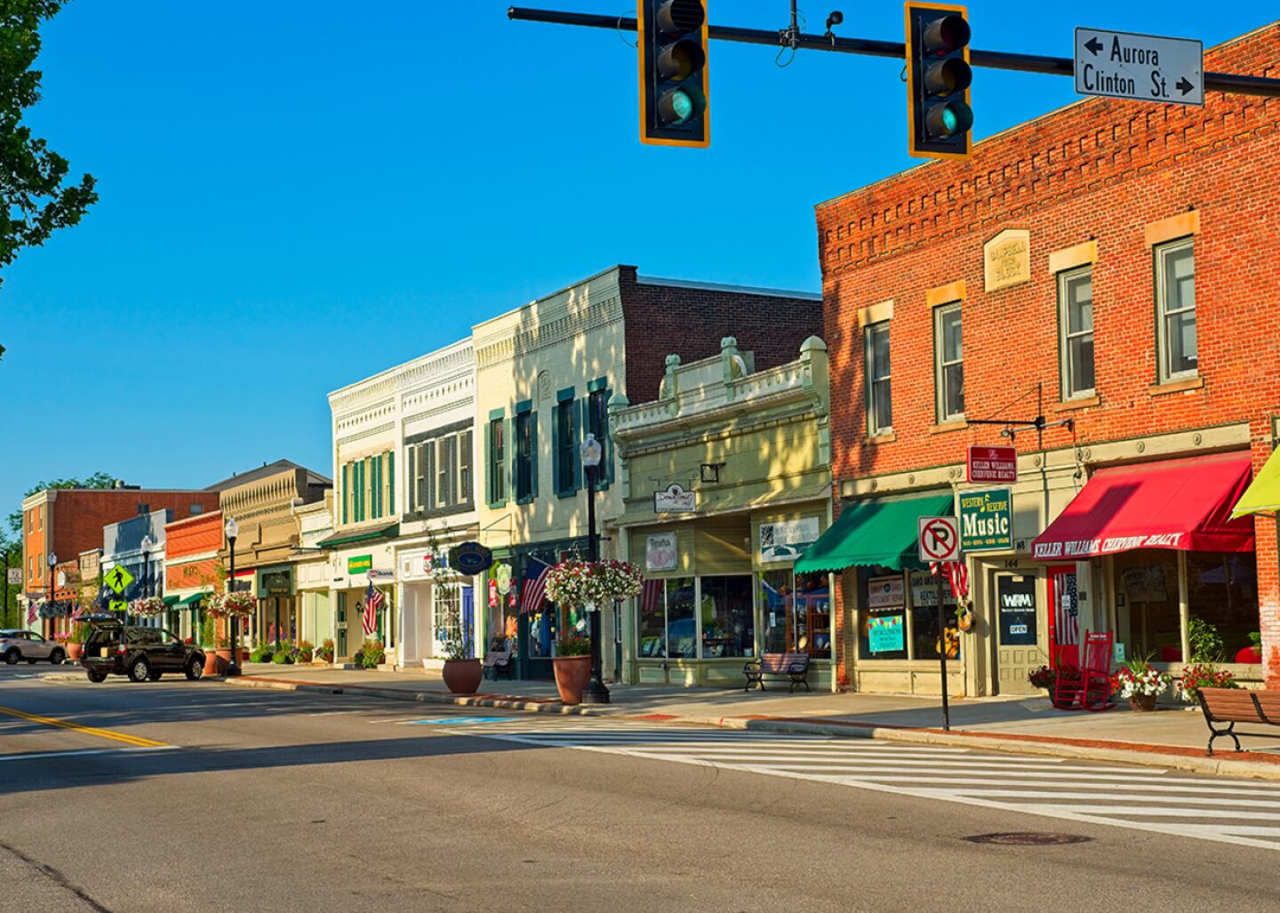 Hudson ranks as one of Cleveland's top suburbs for its good schools and outdoor opportunities. City planners created a walkable downtown with four greens that host about 150 events each year. City zoning forbids big box stores, strip malls, and drive-thrus—while one McDonald's drive-thru was approved before the zoning laws were put in place, it was built to look like a tasteful private home.