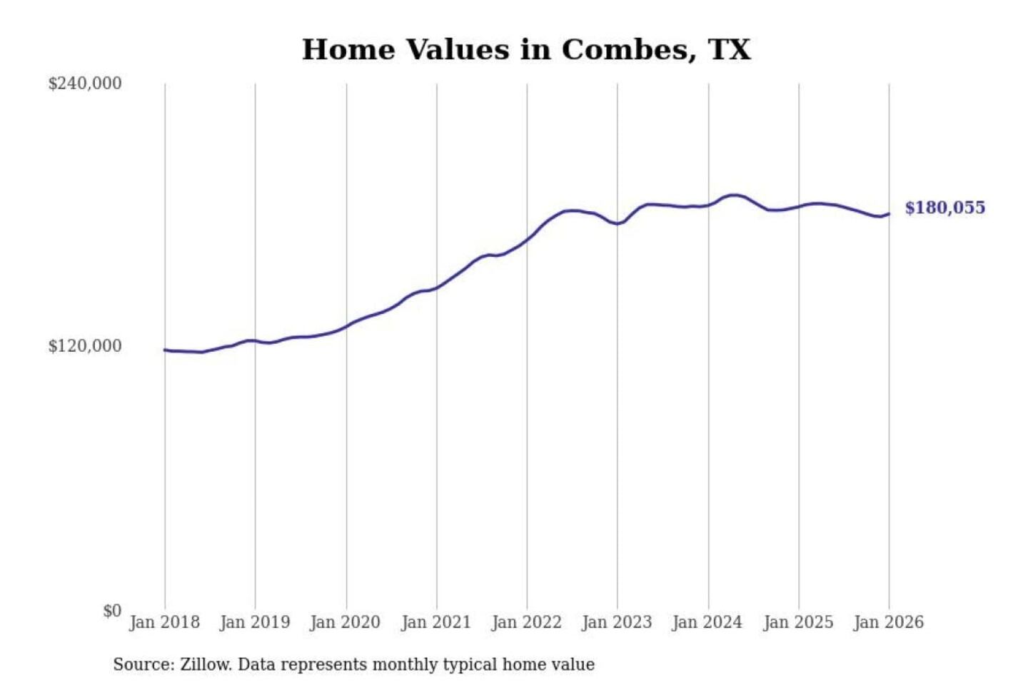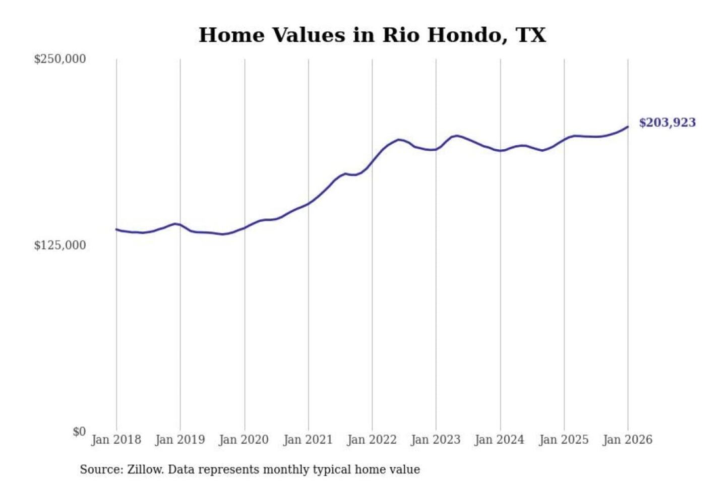Stacker compiled a list of cities with the most expensive homes in the Brownsville-Harlingen, TX metro area using data from Zillow. Charts show the monthly typical home value since January 2018.
