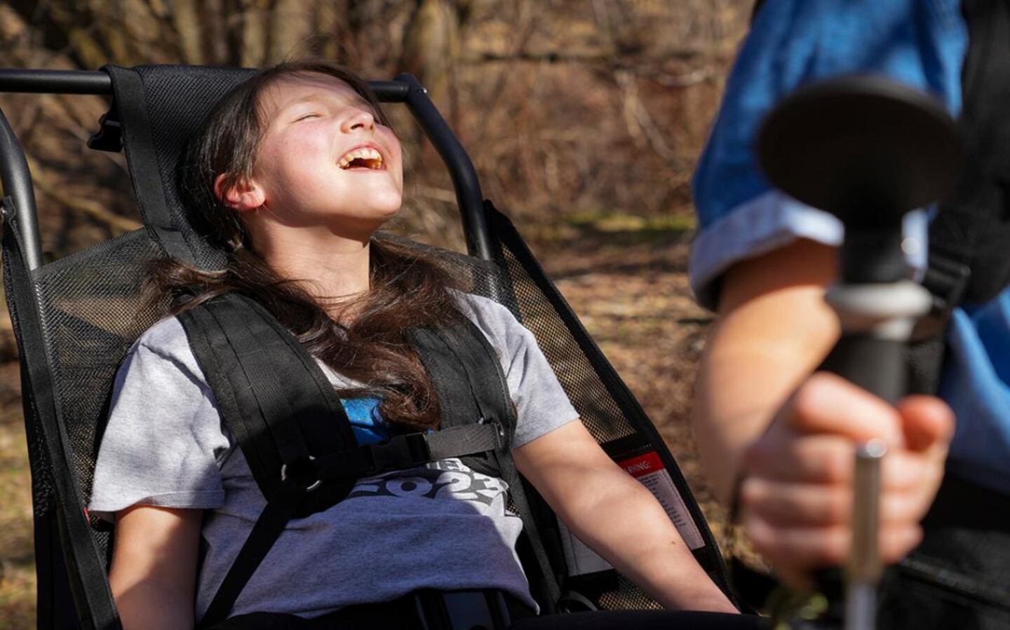 The cart has also improved Kaelyn's condition, Dugan said. Since her daughter, who is blind and nonverbal, has been able to go out into nature and have more sensory experiences, she's been talking more.