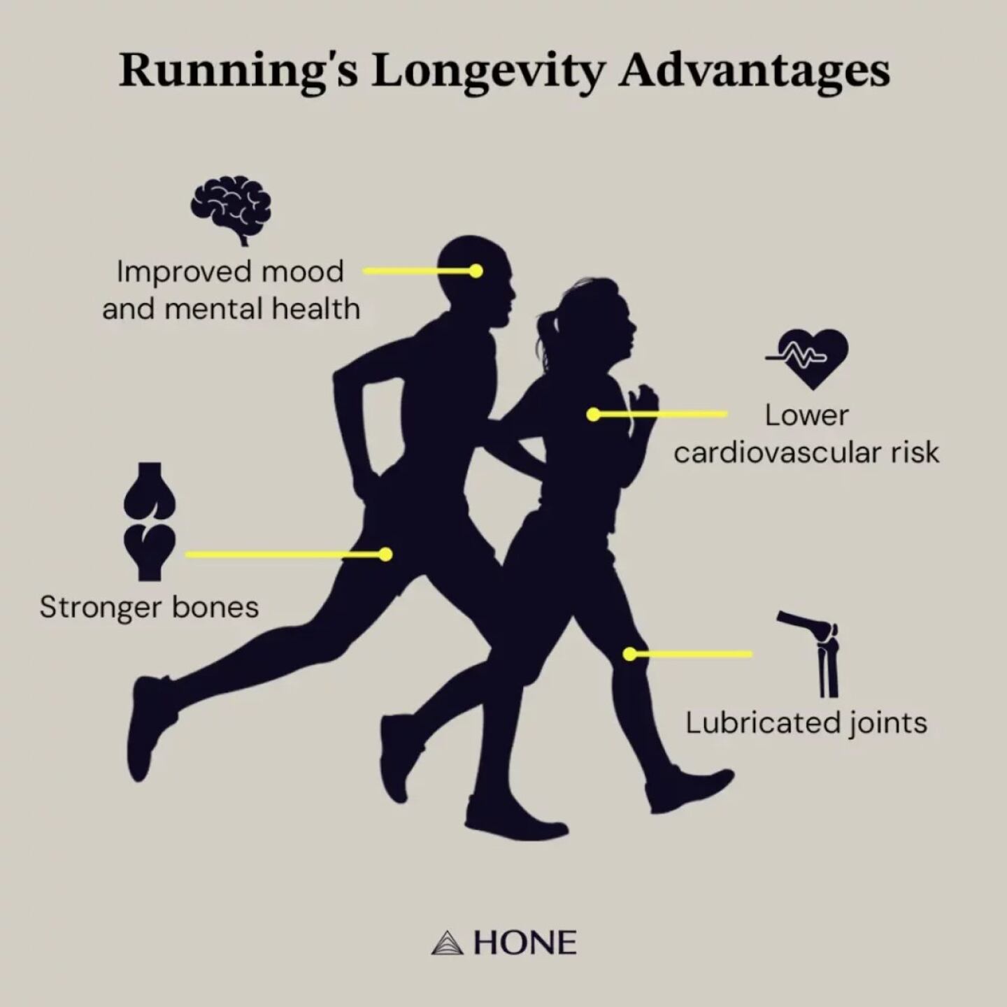 Running, like other forms of aerobic exercise, is often called a "longevity drug," says Candice Knight, M.D., a longevity-focused integrative physician. "It's linked to better outcomes across the board, from lower rates of heart disease and certain cancers to improved immune function and lung capacity."