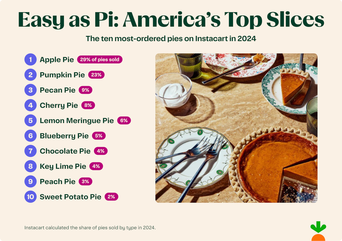 In celebration of Pi Day on March 14 (3/14)—a food holiday savored for making math just a little sweeter—Instacart serves up a healthy slice of its ordering data to determine which pies win Americans' hearts and stomachs, uncovering surprising regional favorites and unexpected sweet trends.