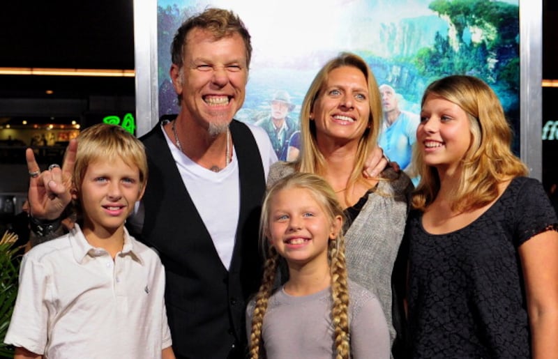 James Hetfield Metallica lead singer James Hetfield gestures while posing with his family on arrival for the film premiere of 'Journey 2 The Mysterious Island' at Grauman's Chinese Theater in Hollywood, California, on February 2, 2012. The 3D family adventure opens in theaters on Friday, February 10 2012. AFP PHOTO / Frederic J. BROWN (Photo credit should read FREDERIC J. BROWN/AFP via Getty Images) (FREDERIC J. BROWN/AFP via Getty Images)